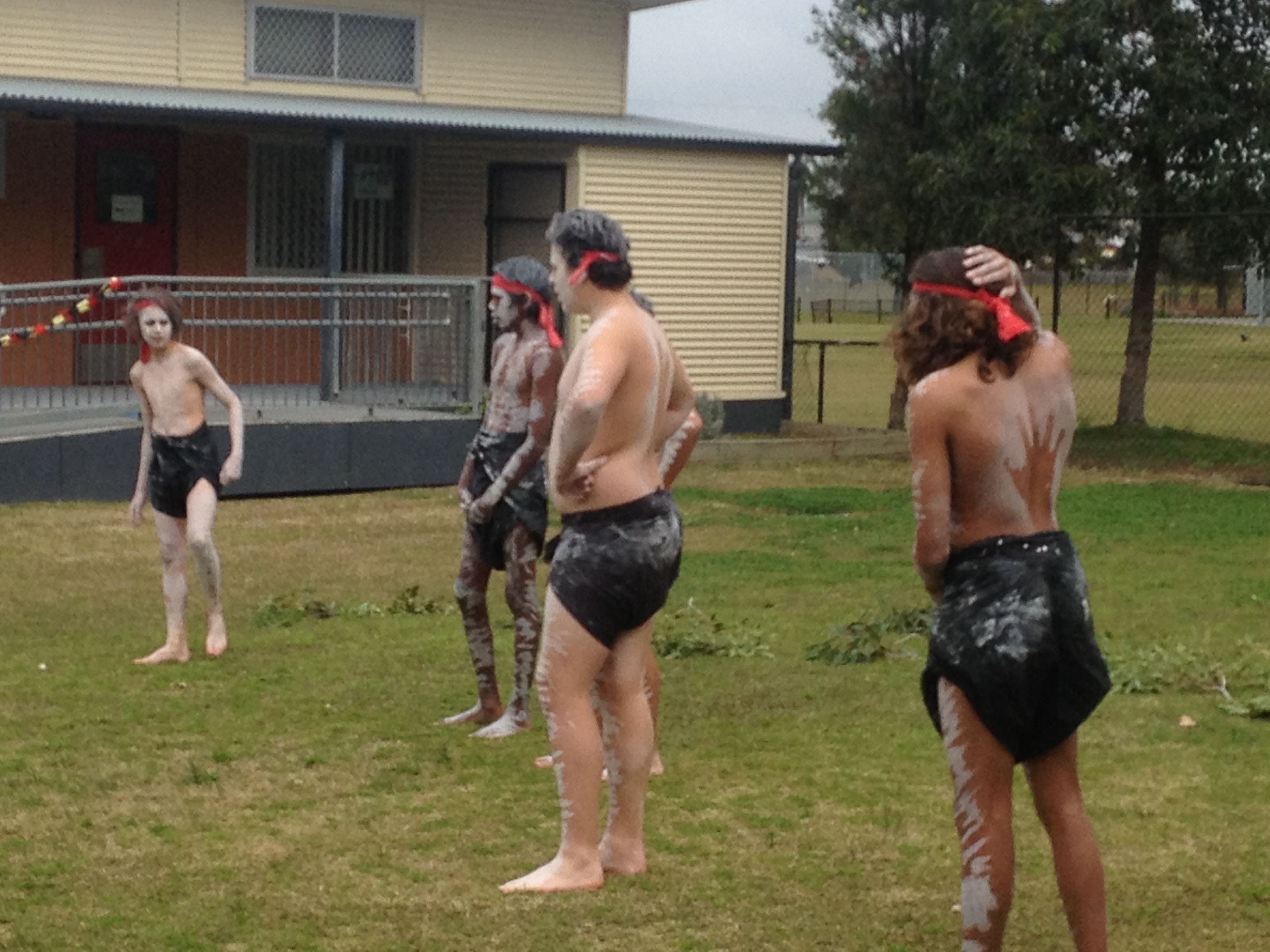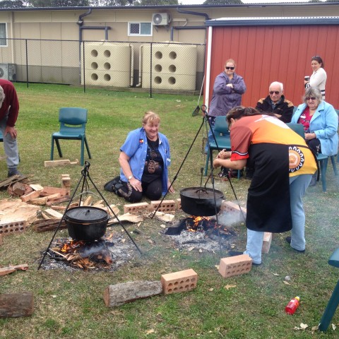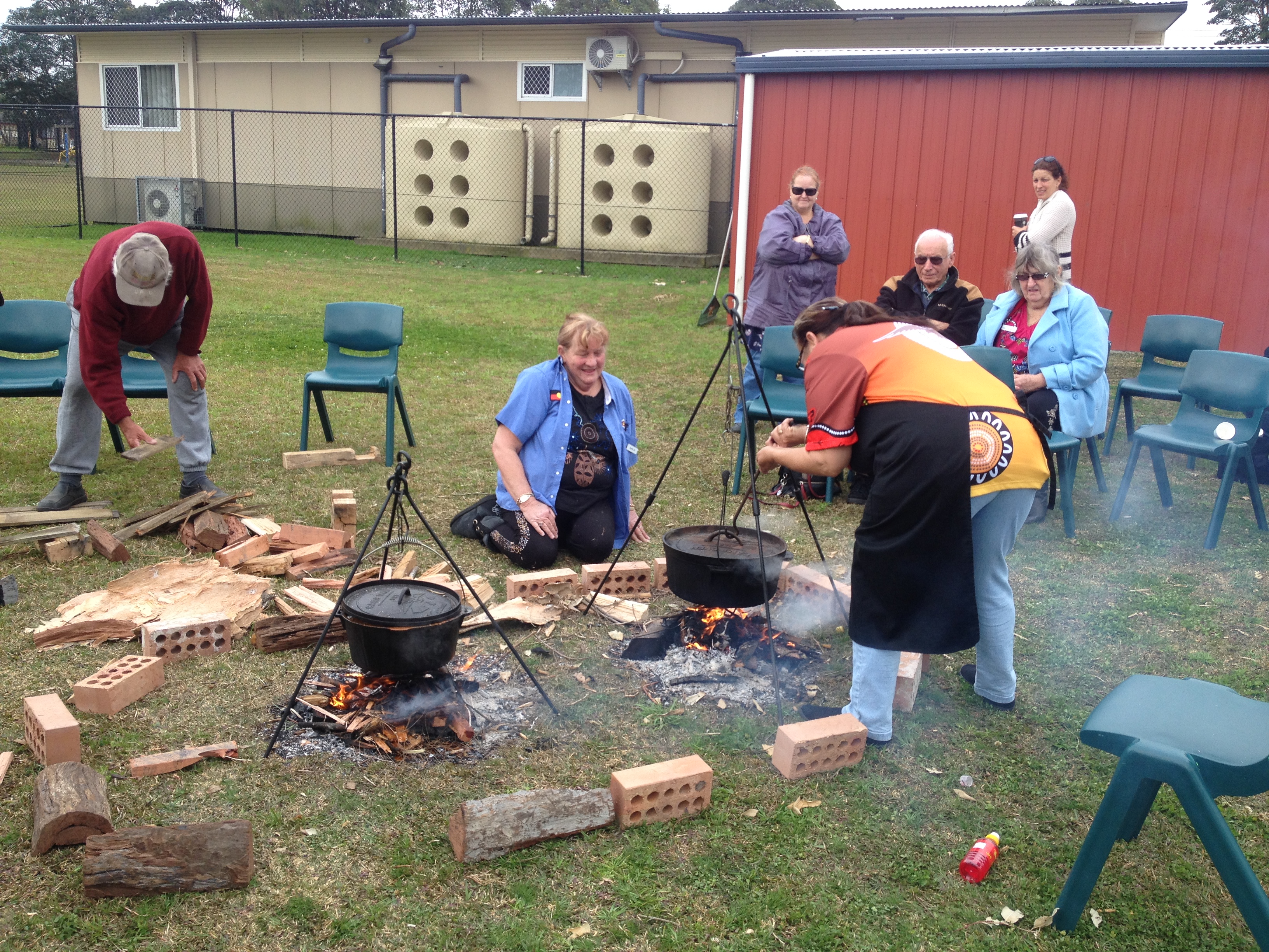 About sixty adults and children marked the occasion by enjoying food cooked over the fire (started and kept going by Aboriginal Elder, Di Mills), eating Johnny cakes, creating some Aboriginal art with Sherie Newman and watching a performance by the Aboriginal dance group Wakakulang from Rutherford Technology High School, led by Michael Heitmeyer. It was a great day for all, and a wonderful way to strengthen community bonds.